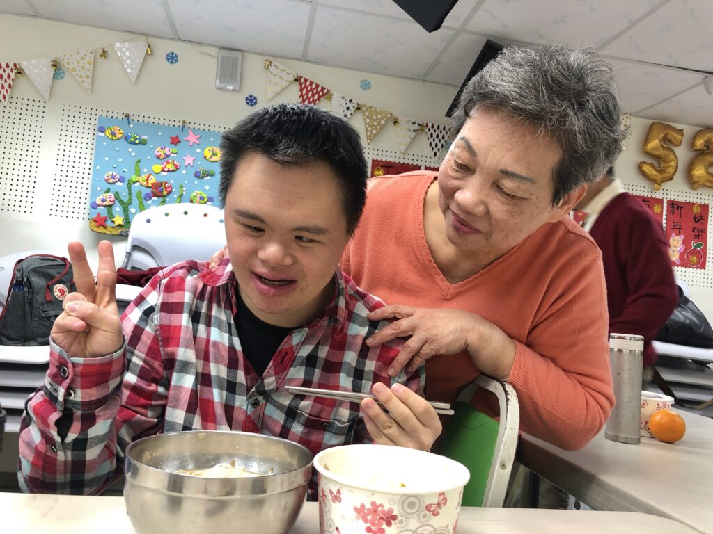 一個特別感人的畫面是,一位名叫小諺的學員,多年來因身體狀況不佳,總是呈現「坐著睡覺」的狀態,動作緩慢的程度就像樹懶一樣緩慢,對外界幾乎沒有反應。然而,有一天早上,小諺突然用跑的,從後面緊緊抱住了正在準備食材的月淑姐。這個擁抱讓她當場感動不已,深刻體會到,即使是那些看似活在自己世界裡的孩子,也能真切地感受到那被愛和表現愛。